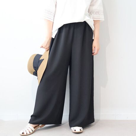 脚のラインを拾わない 夏の涼やか楊柳ワイドパンツ