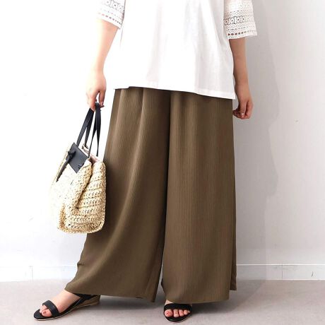 脚のラインを拾わない 夏の涼やか楊柳ワイドパンツ