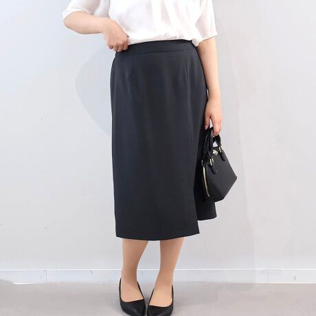 きちんと感のあるストレートシルエットで、ビジネスシーンでスマートに決まる膝下丈スカートです。