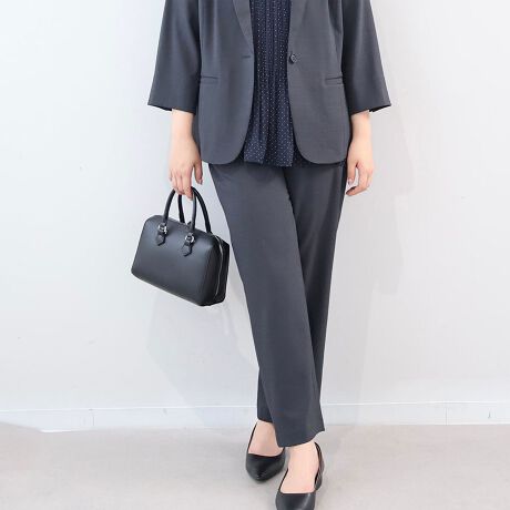 ブラウスなどの上品なトップスをインして着用いただくと、高い腰位置を強調し、よりシャープでハンサムなオフィススタイルが完成します。