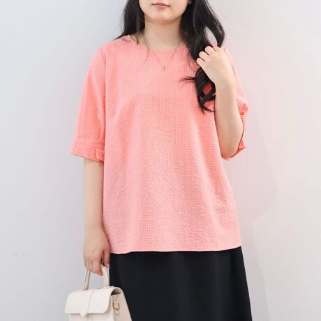 【大きいサイズ】【多機能】ポコポコサッカータックスリーブブラウス