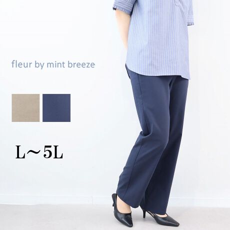 【大きいサイズ】麻混ストレッチストレートパンツ