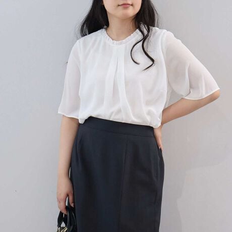 首元のちびフリルがアクセントの多機能ブラウス