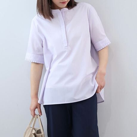 【大きいサイズ】【イージーケア】バックシャンバンドカラープルオーバーシャツ
