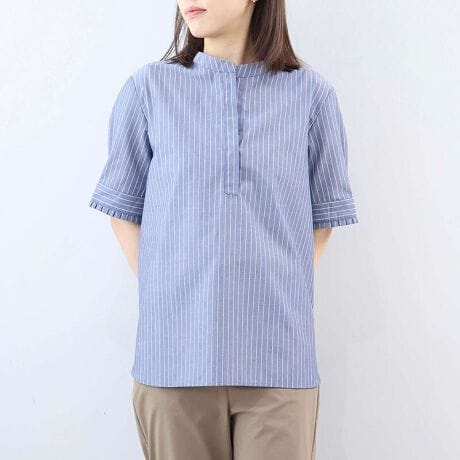 【大きいサイズ】【イージーケア】バックシャンバンドカラープルオーバーシャツ