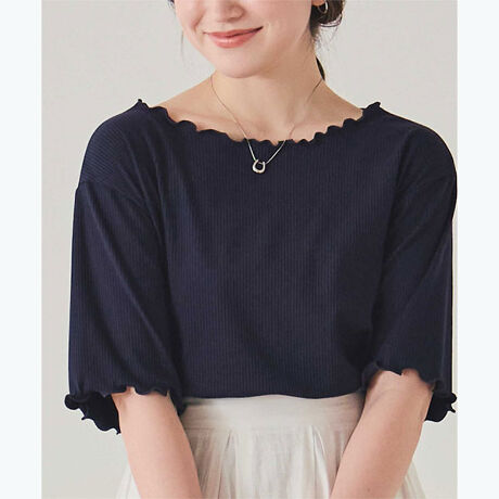 ・繊細なメロー使いがさりげなく甘さを添える、シンプルなのに可愛いく着映えするリブカットソートップス