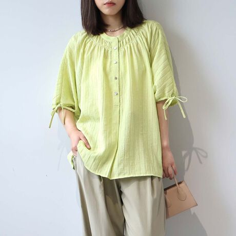 風をはらんでふわりと揺れる、軽やかで涼しげなシルエットが魅力のブラウスです。