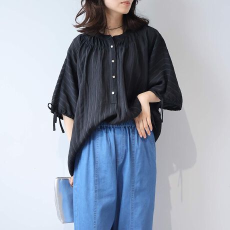風をはらんでふわりと揺れる、軽やかで涼しげなシルエットが魅力のブラウスです。