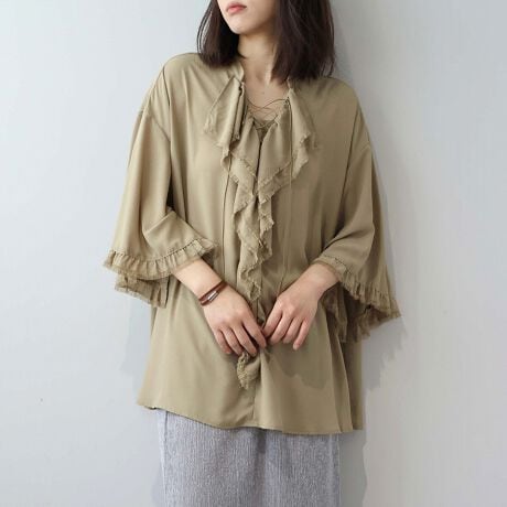 【M〜L】フリンジフリルレースアップブラウス