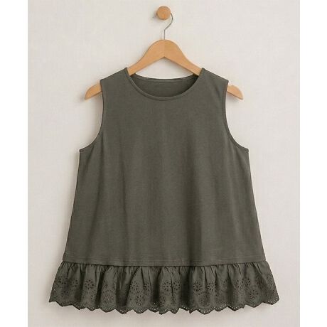 裾にあしらった刺しゅうレースが、コーデに華やかさを添えるタンクトップ。