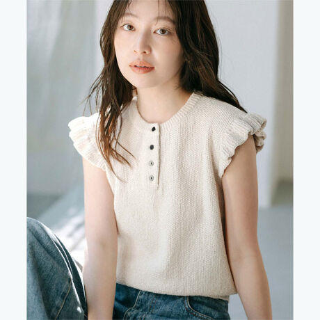 【yukiさんコラボアイテム】袖フリルサマーニット