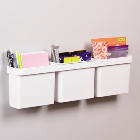 ●吸盤で冷蔵庫やタイルなどに設置できる3連ポケットです。