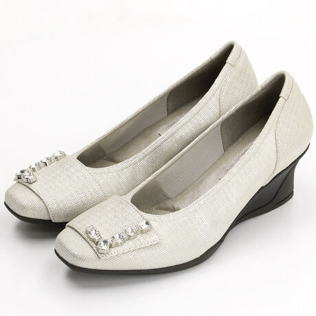 【大きいサイズ】ビジューモチーフコンフォートウェッジパンプス