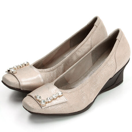 【大きいサイズ】ビジューモチーフコンフォートウェッジパンプス