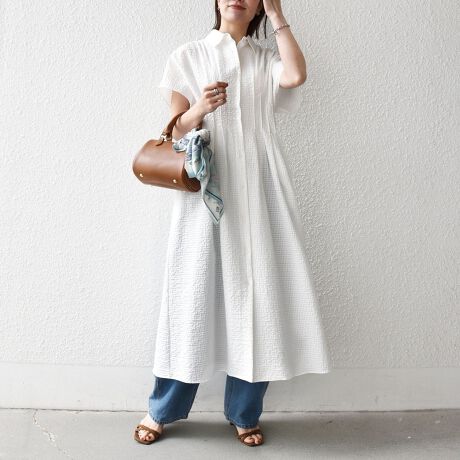 シャツ衿なのできちんと感もあり、オンオフ問わず活躍する着映えワンピースです。