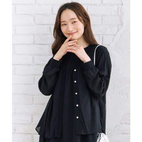 軽やかでさらっと羽織れる着心地が特徴で、シワ感のあるナチュラルな表情がこなれた印象を演出します。