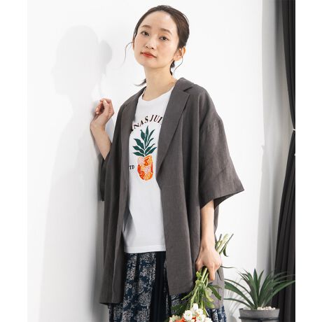 麻100%ならではのナチュラルな風合いが魅力のハーフスリーブジャケット。