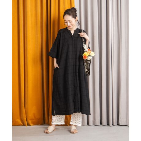 綿100%のやさしい風合いに、さりげないドビーチェックが映えるワンピース。