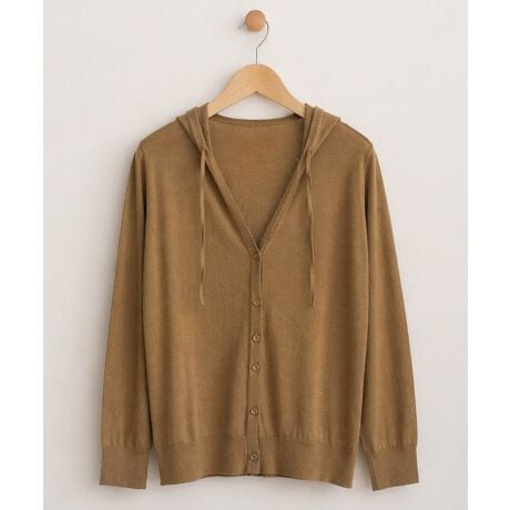 ほんのり透ける軽やかな素材感が魅力のフーディーカーディガン。