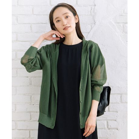 ほんのり透ける軽やかな素材感が魅力のフーディーカーディガン。