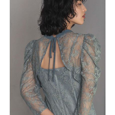 ボレロのリボンの隙間から見える肌見せが今っぽさをプラス。