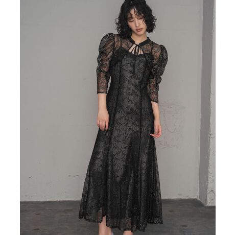 ワンピースはやや高めのウエスト位置でシェイプし、裾にかけて広がりすぎないフレアラインですっきり細見え効果があります。