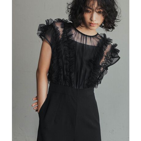 チュールフリルとパンツをドッキングしたコンビネゾン。