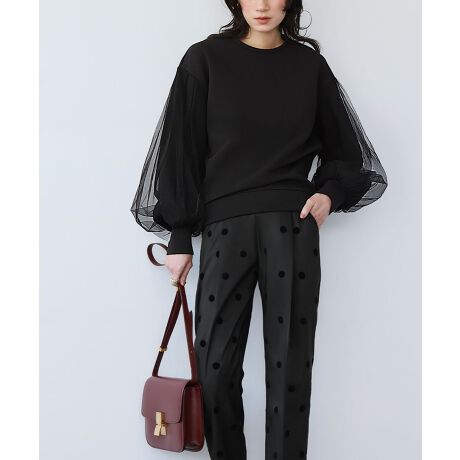 着心地抜群のダンボール生地とチュール素材をドッキングしたボリュームスリーブカットソー。