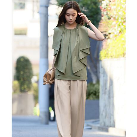 両サイドのフリルがたっぷりとした分量感で、1枚で着映えするアイテムです。