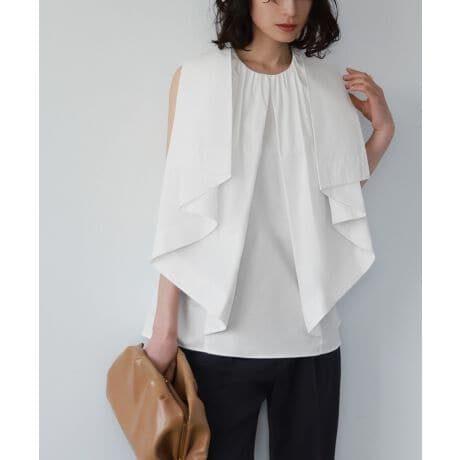 両サイドのフリルがたっぷりとした分量感で、1枚で着映えするアイテムです。