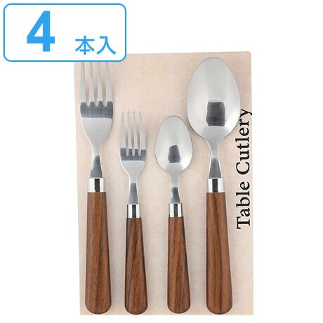●木目調の落ち着いたデザインでお洒落なカトラリー4本セットです。