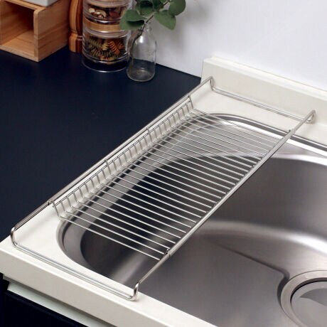 ●伸縮ができるスライド式なのでシンクの奥行に合わせて設置できます。