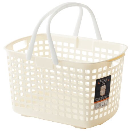 [型番:347996]【デザイン】●中身がつぶれないように重ねて使えるバスケットです。●脱衣カゴとしてお使いいただけます。●清潔感のあるホワイトカラーがランドリー周辺をすっきりきれいに見せてくれます。●こちらはライトサイズです。●安心の日本製です。【スペック】サイズ/約幅31.7×奥行46.2×高さ26.2cm重量/約640g内容量/1個材質/ポリプロピレン種類/アイボリー、ブルー、グリーン生産国/日本製