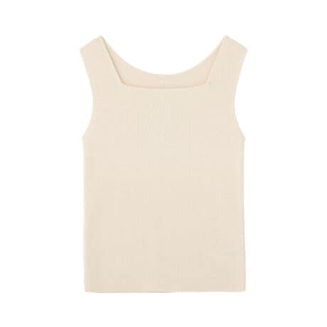 スクエア&クルーネックの前後2WAYで着用出来るノースリーブニット。