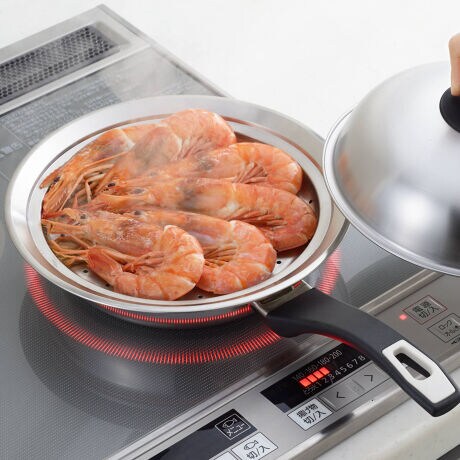 ●手持ちのフライパンに乗せるだけで、蒸し器になる蒸しプレートです。