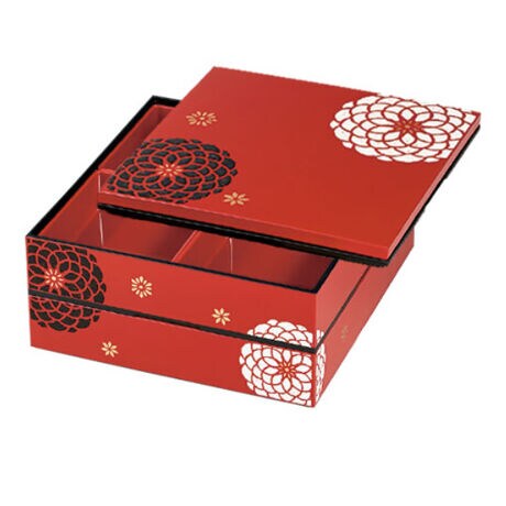 ●大きな花の模様が美しく、高級感のある見た目がいつもの料理をまるで高級料亭の一品のように演出してくれる重箱です。