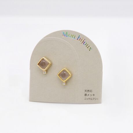 [型番:PL25251]スクエア型の天然石と1粒のキュービックジルコニアがモダンな印象のアクセサリーです。