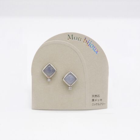 [型番:PL25251]スクエア型の天然石と1粒のキュービックジルコニアがモダンな印象のアクセサリーです。