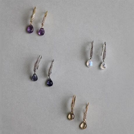 [型番:PC25169]天然石のアクセサリーは耳元に上品な印象を与えてくれます。フックピアスにはキュービックジルコニアがあしらわれており美しい輝きを放ちます。