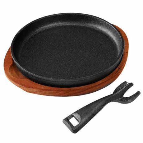 ステーキ皿 丸型 21cm スプラウト 鉄鋳物製 IH対応 木製プレート付き