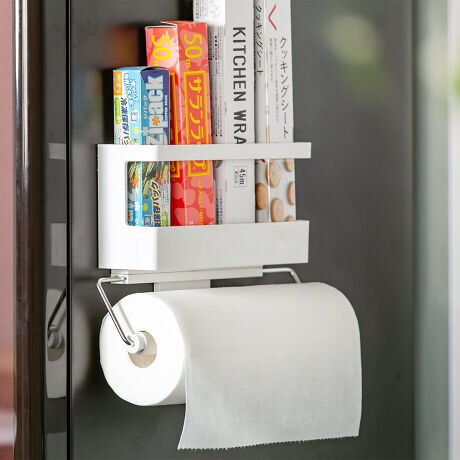 ●マグネットでくっつけるだけでキッチンをすっきり整えることができる収納ポケット&ペーパーホルダーです。