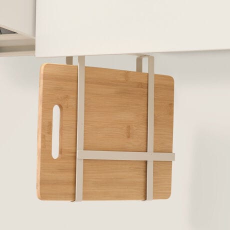 ●棚から吊り下げて、省スペースでまな板を収納できます。