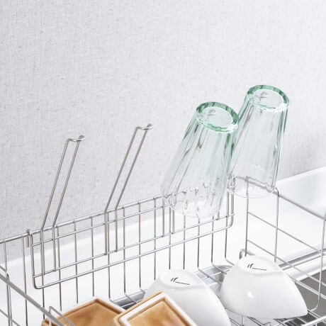 ●お手持ちの水切りかごに後付けできる、ステンレス製の4連グラスホルダーです。