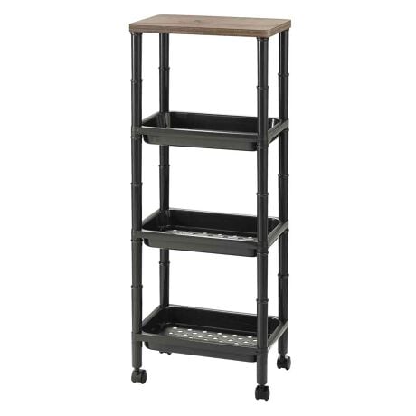 [型番:408954]【デザイン】●収納+サイドテーブルとしても使えるフレキシブルなラック●ランドリー周りの収納としても●サイドテーブルとしても使える天板●収納する物に合わせて高さを調節できる●簡単組立【スペック】サイズ/約幅34.9×奥行22.9×高さ88cm内容量/1台材質/本体:ポリプロピレン天板:プリント化粧パーチクルボード生産国/日本製キャスター/付き組立状態/お客様組立品