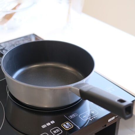 ●熱が均一に伝わる、アルミダイキャスト製のフライパンです。