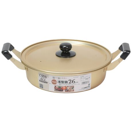●使いやすいベーシックな蓋付きアルミ両手鍋(浅型)です。