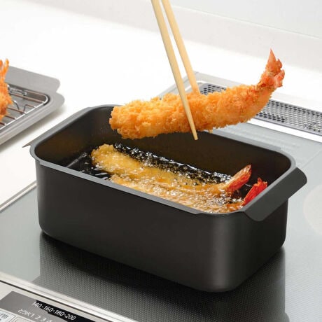 ●少ない油で揚げられるコンパクトな角型の揚げ鍋です。