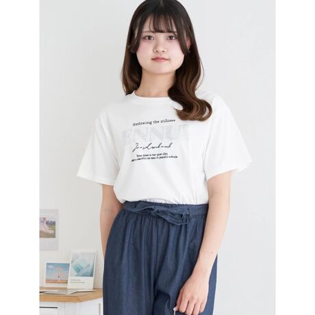 [型番:26550734386]ロゴとフロッキープリントを組み合わせた、表情豊かなデザインのTシャツ。異なる質感の加工がアクセントとなり、シンプルながらも存在感のある仕上がりです。程よくゆとりのあるシルエットで、デイリーに取り入れやすい一枚。デニムでカジュアルにも、スカートで女性らしくも着こなせるアイテムです。モデル(黄緑着用)身長:165cmMサイズ着用モデル(オフホワイト着用)身長:165cmMサイズ着用