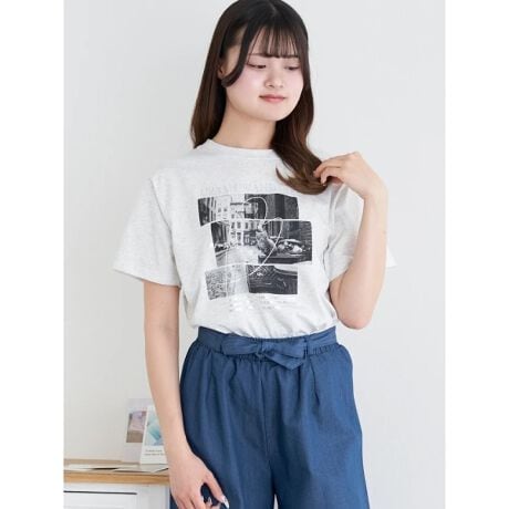 [型番:26550734310]フォトプリントと刺しゅうを組み合わせた、表情豊かなデザインのTシャツ。異素材の組み合わせが奥行きを生み、スタイリングのアクセントになります。程よくゆとりのあるシルエットで、デイリーに取り入れやすい一枚。デニムでカジュアルにも、スカートでバランスよく着こなせるアイテムです。モデル(オフホワイト/濃グレー/淡グレー着用)身長:165cmMサイズ着用