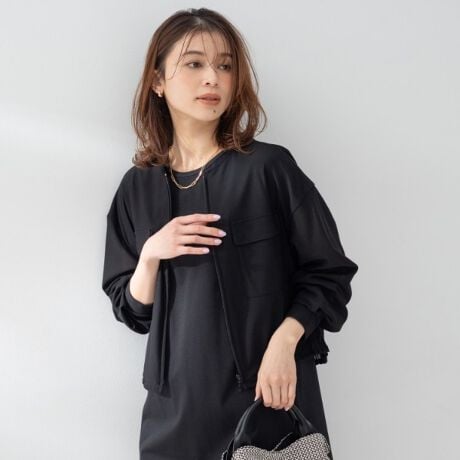 透け感が魅力のシアーブルゾンは、都会的で軽やかな印象を与えるアイテム。